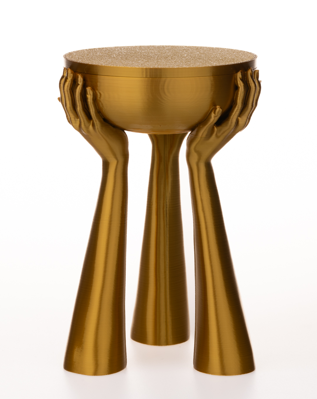 • De Tabouret is 3D geprint (erg gedetailleerd maar lichte lijnen van 3d printen zichtbaar).
